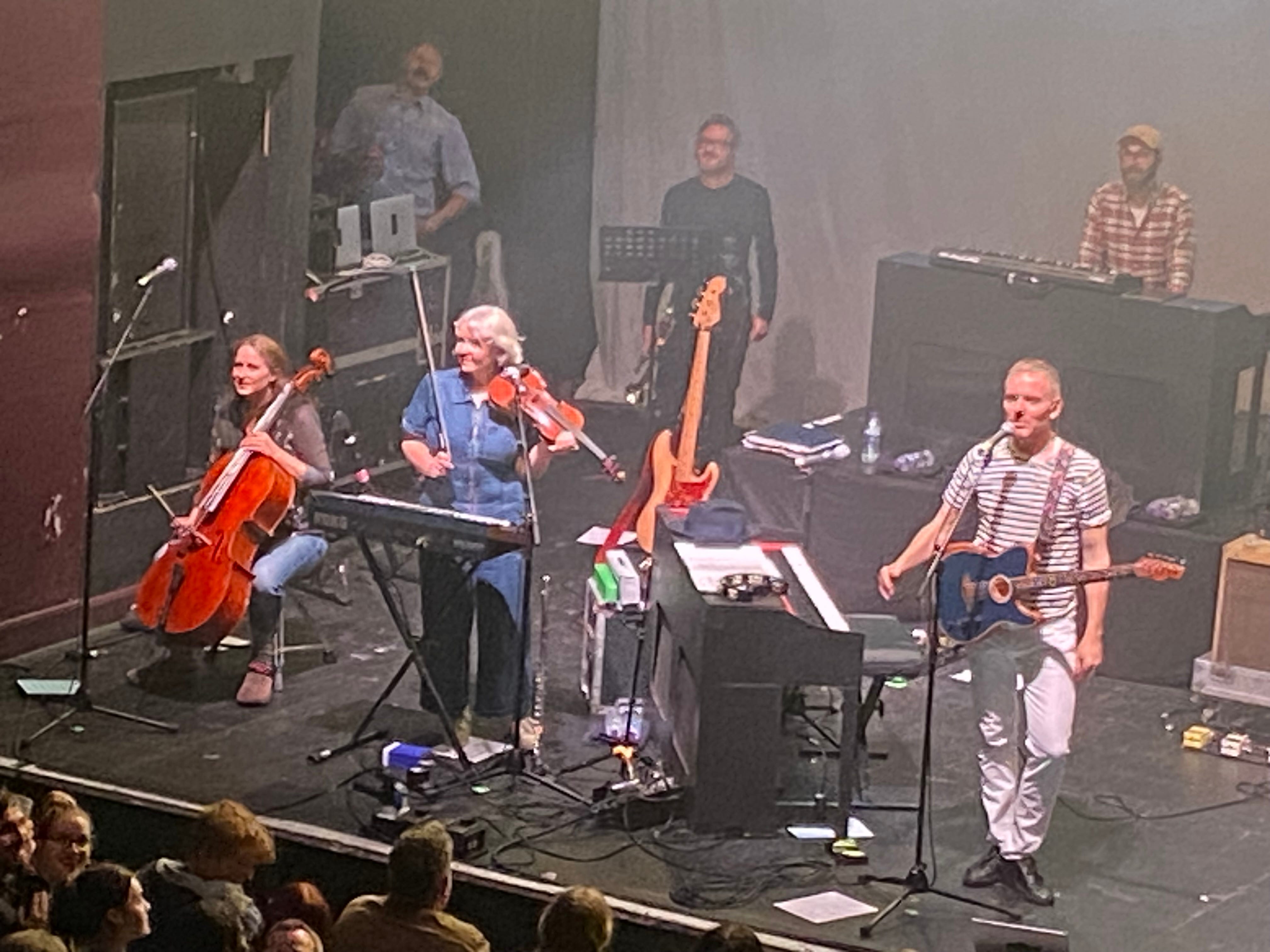 The fact that B&S incorporate ‘school orchestra’ instruments (recorder, cello, violin) into their always melodic sound is mark of distinction, likewise Murdoch’s wordy narratives. With nine band members on stage, there’s always something to look at, especially as they swap instruments with ease.